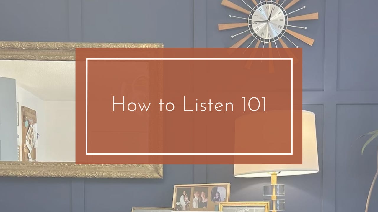 So … here’s where the “How to Listen 101” comes in. If we want to shift away from diagnose-and-prescribe, we need to change how we listen. Here are some key shifts I talk about incessantly (#iykyk) (and that I shared during the Live Office Hours* that inspired this article):